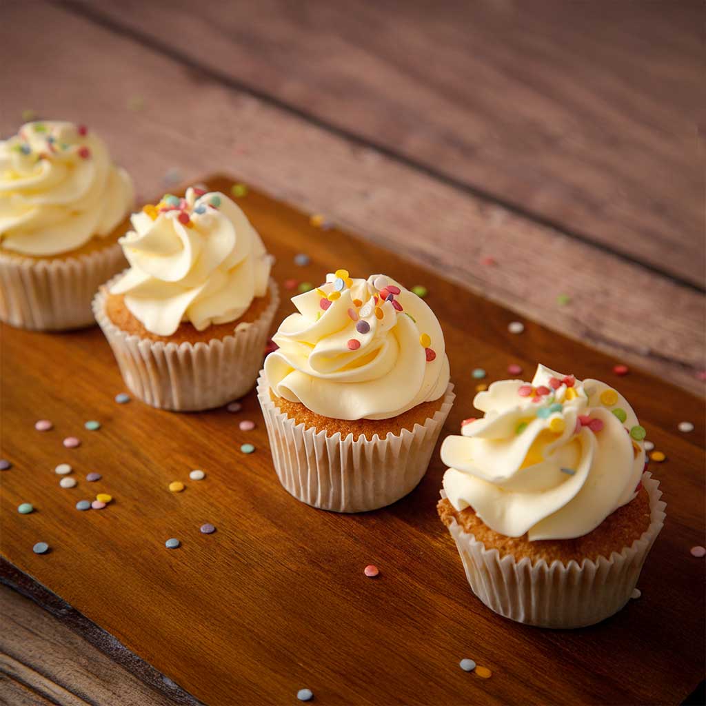 Nuestro cupcake vainilla bourbon es sencillamente delicioso: combina el bizcocho de vainilla bourbon de Madagascar con cobertura cremosa. Un clásico artesanal de sabor suave y aroma natural.